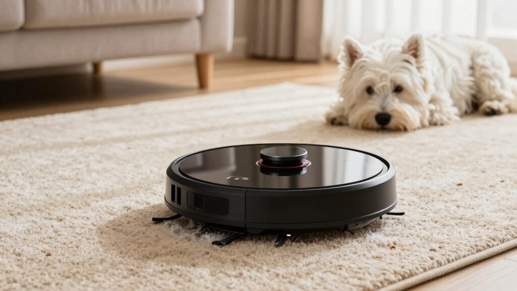 A stitch in time saves nine, and when it comes to pet hair, a good robot vacuum can make your life easier. It handles pet hair suction efficiently, especially on low to medium pile carpets. Just make certain it has a strong battery life, so it can cover more ground before needing a recharge. Regular cleaning keeps your home fur-free and your vacuum performing at its best.