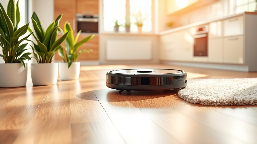 Robot vacuums can transform your home into a healthier space by automating the removal of dirt and allergens from your floors. They use HEPA filters to trap tiny particles, improving air quality and easing your breathing. With smart technology, you can control them from your smartphone, making it easy to maintain a clean environment. Regular use not only keeps your floors spotless but also reduces allergens, enhancing your overall well-being. Discover further insights into their benefits.