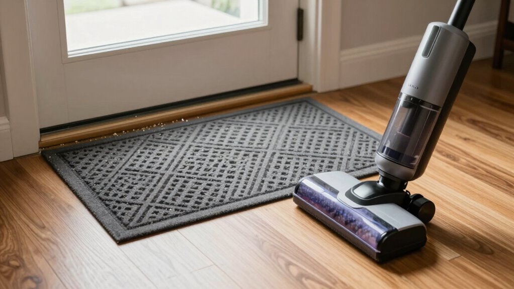 Use a HEPA-filter vacuum to thoroughly clean entryways, targeting corners, edges, and under mats to reduce allergens and dirt buildup.