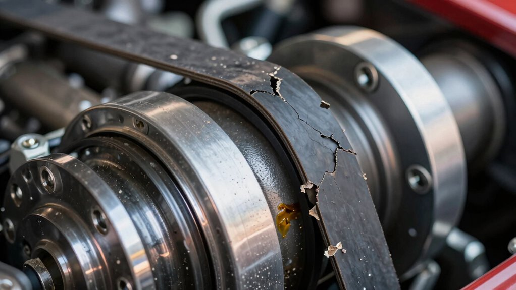 Being aware of the power consumption associated with belts and related components can also guide you in monitoring their health, especially in vehicles with complex systems. You might notice performance issues like reduced acceleration, rough idling, or overheating, and these can be linked to worn or slipping belts. A slipping belt can’t transfer power efficiently, which means your alternator, power steering, or air conditioning may not operate smoothly. If you hear squealing sounds from the engine bay, it’s often a sign that the belt is slipping or has become loose. Visual inspections are essential—look for glossy spots, cracks, or chunks missing from the belt. Remember, even a slight crack can worsen quickly, especially if the belt is already showing signs of age-related deterioration.