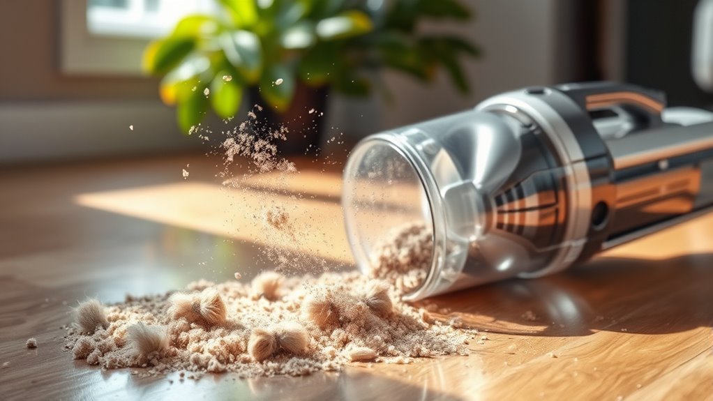 If your vacuum’s spitting out dirt, it’s likely due to a full dirt container, clogged filters, or blocked hoses. A full container limits airflow, while clogged filters reduce suction power, preventing proper dirt collection. Check your hoses for blockages, too, as these can lead to poor performance. Keeping your vacuum well-maintained is key to ensuring it works effectively. Want to know how to resolve these issues? There’s more to discover about vacuum maintenance.