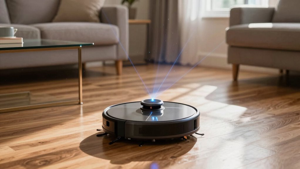 Did you know that over 75% of home accidents happen in low-light conditions? LiDAR navigation can work effectively in low-light environments because it relies on laser sensors rather than ambient light. This guarantees consistent sensor reliability, allowing your robot vacuum to map and navigate accurately even in darkness. So, you can trust it to clean thoroughly without worrying about poor visibility or lighting issues.