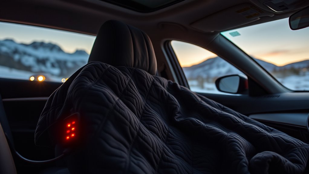 Heated blankets generally don’t interfere with vehicle electronics or charging systems if you choose a quality product. I always verify the blanket has proper safety features and use it according to the manufacturer’s instructions. When connected correctly, it draws minimal power and won’t disrupt your car’s electronics. Just avoid overloading the circuit, and you’ll enjoy cozy warmth without any issues.