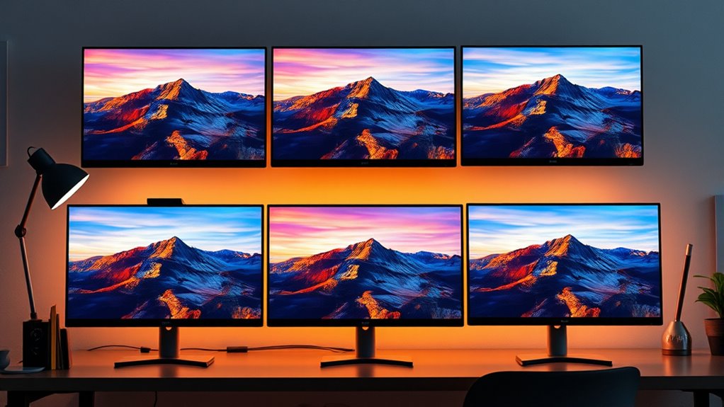 Ensuring your 4K color E-Ink monitor is compatible with your existing devices and setup can make a significant difference in maintaining a smooth, eye-friendly experience. First, check that it supports multiple input interfaces like HDMI, DisplayPort, USB-C, and USB-A, ensuring broad device compatibility. Review the voltage requirements and power delivery options to match your current power sources and avoid overloads. Make sure the monitor works seamlessly with your operating system and graphics hardware to prevent connection issues. Additionally, verify that its refresh technology and control modes are compatible with your devices, reducing lag or display problems. Finally, consider the monitor’s power consumption to optimize energy efficiency and safeguard your setup. Proper compatibility ensures a hassle-free, comfortable viewing experience.