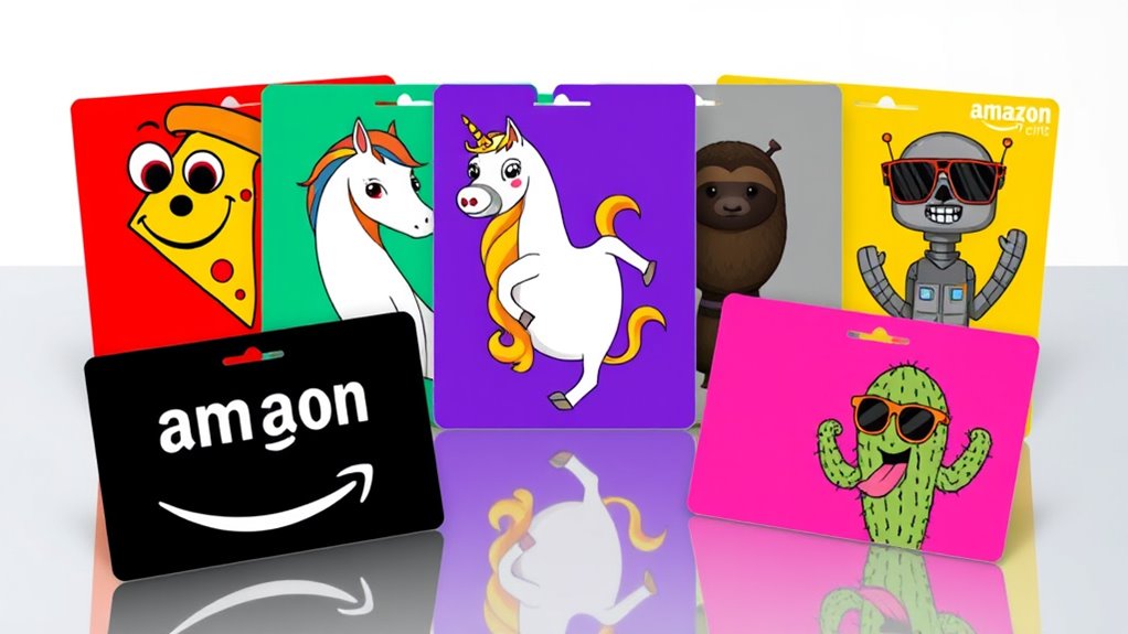 When choosing a funny Amazon E-Gift Card design, ensuring visual clarity and high quality is essential to make the humor pop. Sharp, high-resolution images keep the design crisp and visually appealing, making sure every detail is easily seen. Vibrant colors and well-printed graphics help the comedic elements stand out, grabbing attention instantly. Consistent design elements and detailed illustrations give the card a professional look, maintaining clarity across different devices and screen sizes. Clear, legible fonts prevent misreading or misinterpreting the humorous message, which is *fundamental* for the joke to land. Proper spacing and a clean layout prevent visual clutter, allowing the funny elements to shine without confusion. Ultimately, high-quality visuals elevate the overall impact of your gift, making sure it’s both funny and polished.