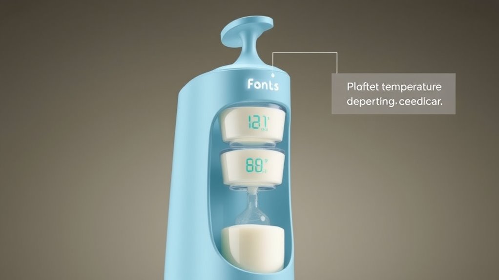 Choosing a baby formula dispenser with temperature control should prioritize ease of use to make feeding times smoother. I look for devices with intuitive controls like touch screens or clearly labeled buttons, which make operation straightforward. Preset temperature options and simple adjustment mechanisms help me quickly set or change the temperature without fuss. Automated features like one-touch dispensing and pre-programmed formulas save me time and reduce errors, especially during busy mornings or late-night feeds. I also appreciate clear digital displays that show the current temperature and dispense volume, so I can easily monitor and confirm settings. Additionally, straightforward cleaning routines and refill processes are essential for hassle-free maintenance, ensuring the device remains user-friendly over time.