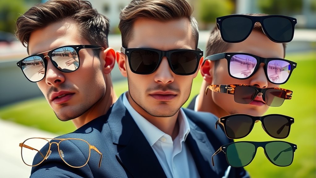 If you’re looking for the best designer sunglasses for men in 2025 that blend style with function, I’ve got you covered. From oversized square frames with bold designs like AIEYEZO and VISOONE to classic styles such as Burberry BE 3074 and BE4181, there’s a wide range of durable, UV-protective options. Whether you prefer rimless, full rim, or oversized shapes, these models offer comfort and fashion. Keep going to discover the perfect pair that fits your style and needs.