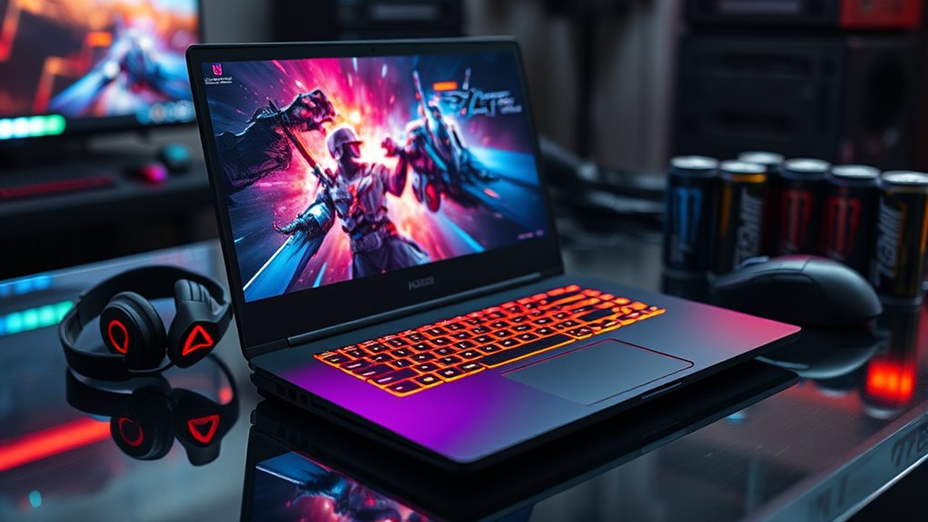 For gaming laptops, I recommend at least 16GB of RAM to guarantee smooth multitasking and gameplay. If you’re into heavy modding or streaming, upgrading to 32GB is ideal. As for storage, a combination of a fast SSD (512GB or more) for quick load times and a larger HDD (1TB or higher) for storing games and files works best. This setup balances speed and capacity for peak gaming performance.