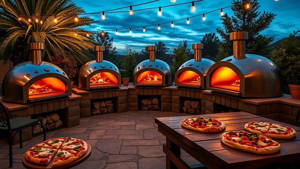 Outdoor pellet pizza ovens substantially speed up cooking times compared to traditional methods. I find that they heat up quickly and reach high temperatures, often around 700°F, which allows me to cook pizzas in just 2-5 minutes. The consistent heat distribution ensures even cooking, so I don’t have to worry about undercooked or burnt spots. Overall, they make pizza prep faster and more convenient, giving me perfect pies every time.