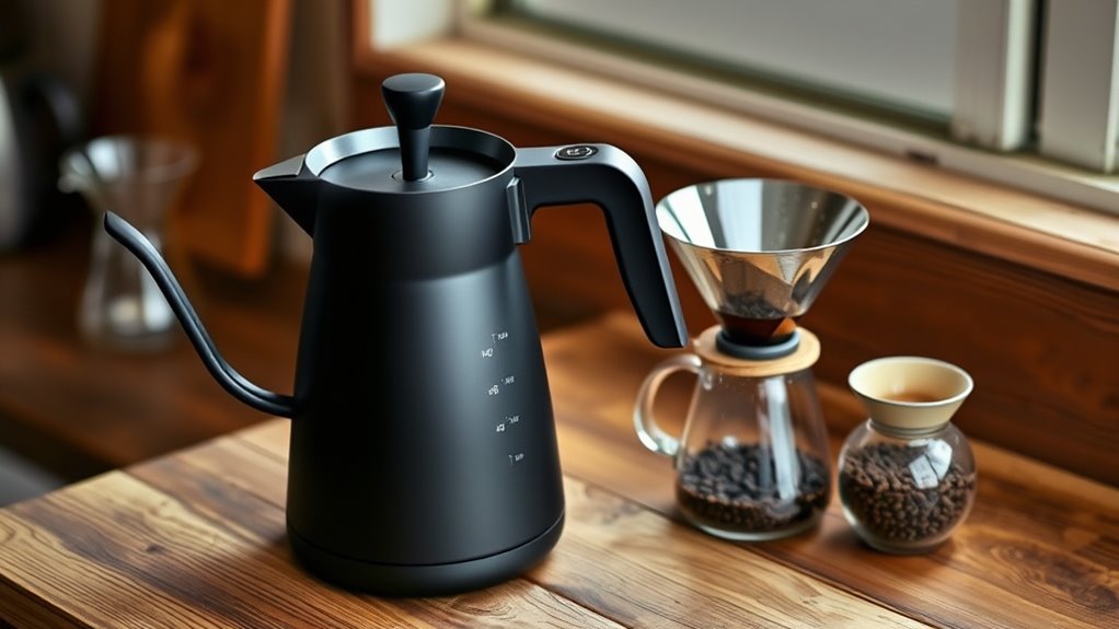 - Look for kettles with precise digital temperature controls, offering ±1°F accuracy for optimal coffee extraction.