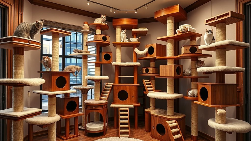 Absolutely, premium cat trees are like luxury resorts for multiple cats! They’re crafted with sturdy platforms, cozy hideaways, and multiple levels, giving each feline a personal playground. I’ve found that these trees help reduce turf wars, offering enough space for everyone to play, perch, and relax. Plus, their quality materials stand up to even the most mischievous paws. Your cats will thank you for creating a multi-level paradise!