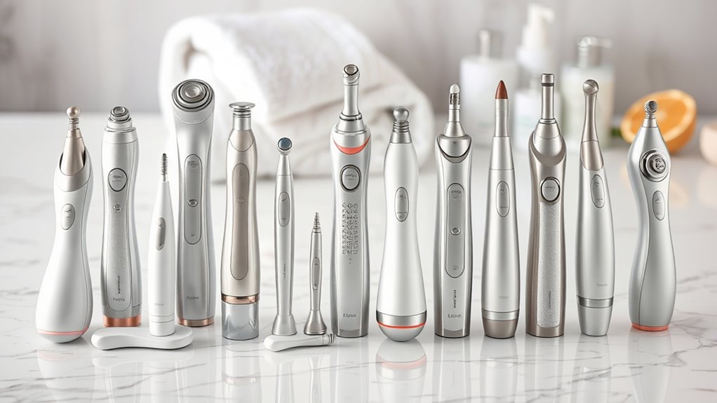 I’ve discovered that the top premium microcurrent facial devices offer spa-like results at home by combining technologies like microcurrent, LED light therapy, heat, and vibration. They’re designed for quick, easy use, helping lift, tighten, and rejuvenate skin with long-lasting results. Many are portable, customizable, and incorporate safety features. If you want to find out which models stand out for their advanced features and proven effectiveness, there’s more to explore below.