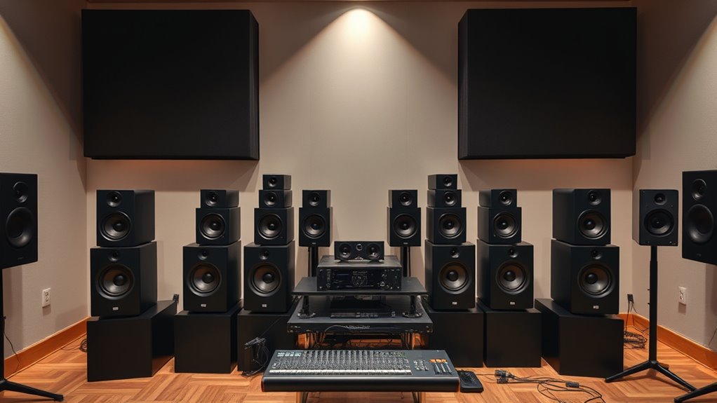 I recommend calibrating your studio monitors at least once every six months to guarantee the best sound quality. If you’re frequently using them or notice any changes in sound clarity, consider more frequent checks. Regular servicing, like inspecting cables and drivers, helps prevent issues. Keep an ear out for distortions or uneven sound, which may signal it’s time for calibration or maintenance. Staying proactive keeps your monitors performing at their best.