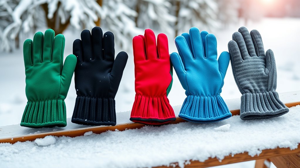 If you’re looking for the best touchscreen gloves of 2025 that keep your hands warm and connected, I recommend checking out options like Isotoner’s Stretch Fleece Gloves, premium winter gloves from Trendoux, and versatile styles from Achiou. These gloves combine durable materials, excellent touchscreen sensitivity, and weather-resistant features. They also offer a comfortable fit with good grip for all-day wear. Keep going to discover how to choose the perfect pair for your needs.