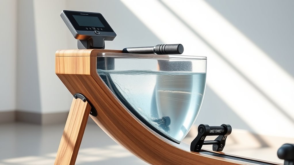 Have you ever wondered how to customize the intensity of your rowing workout? Water-resistance rowers make this easy with adjustable resistance options. Many models let you change the resistance by adding or removing water from the tank, giving you control over how hard you want to work. Some feature built-in systems that automatically adjust resistance based on your rowing speed or preferences, providing a seamless experience. Digital controls also allow quick, precise resistance changes during your session, so you can easily increase or decrease difficulty on the fly. Since water naturally responds to your effort, increasing your rowing speed naturally raises resistance without mechanical tweaks. These options ensure your workout stays challenging and tailored to your fitness level.